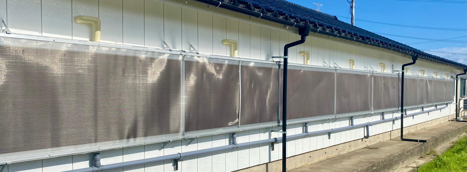 このシステムは、気化熱による冷却効果を生む装置です。空調機に比べ、消費電力を大幅に削減。自然原理を活かしたシンプル構造で省エネ性に優れます。